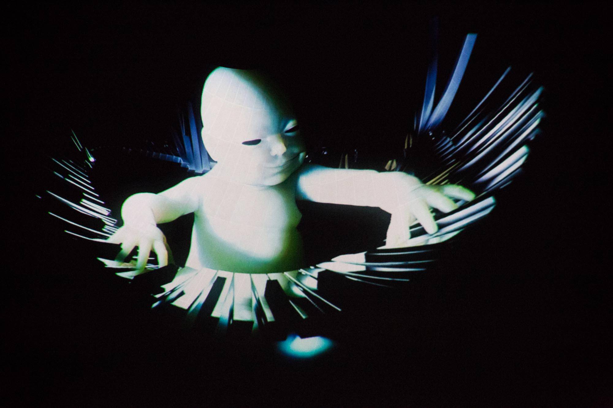 Jesse Bru as seen through Chimerik’s visualization at New Forms Festival, Vancouver, Sept. 19th 2014. Kirk Chantraine photo.