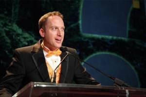 Vancouver adventure-traveller Robin Esrock MCs the club’s annual dinner.